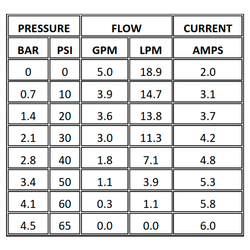 - Integrierte Steuerung: Abschaltung bei 55 PSI, Wiedereinschaltung bei 40 PSI und Bypass bei 65 PSI (einstellbar).