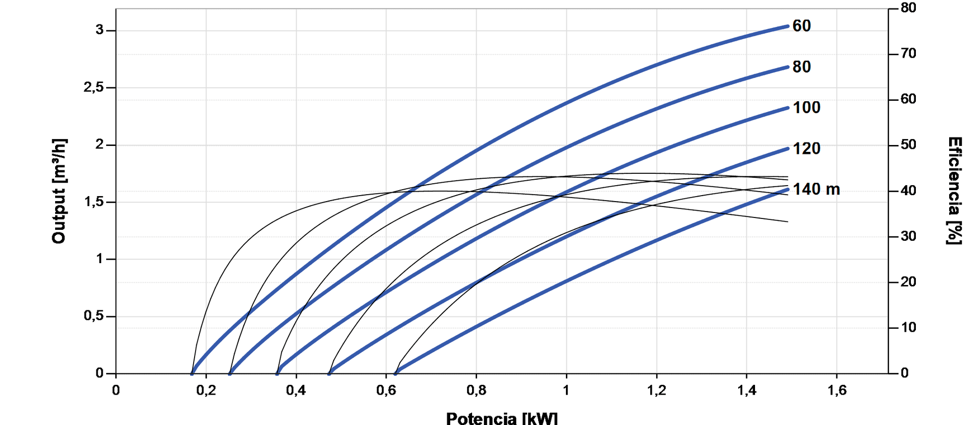 - System performance: 3.0 m³/h and 140 m under optimal conditions.