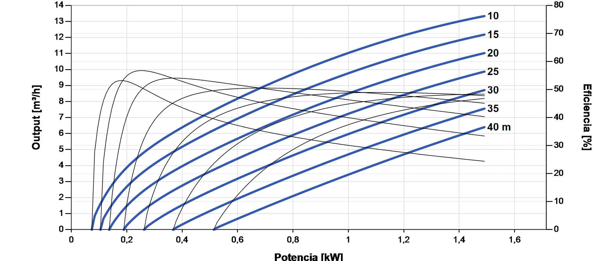 Ideal for sprinkler/low-medium pressure irrigation, elevated tanks, water transfer with elevation difference, and supply on farms. Optimal when a good balance between pressure and flow is required in 4" wells.