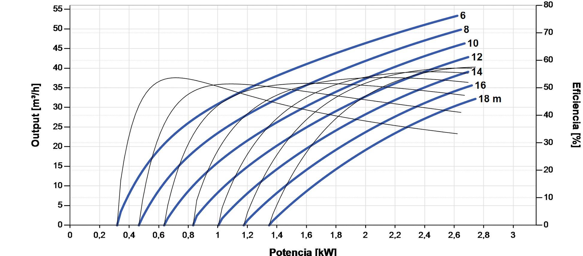 | Maximum flow / head | 53 m³/h / 18 m |