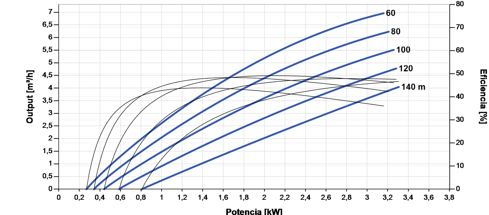 | Max. flow / head | 7.0 m³/h / 140 m |