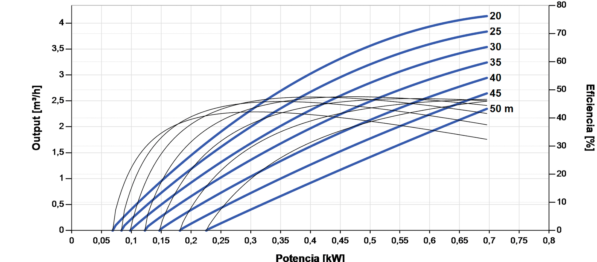 - System performance: 4.1 m³/h and 50 m under optimal conditions.