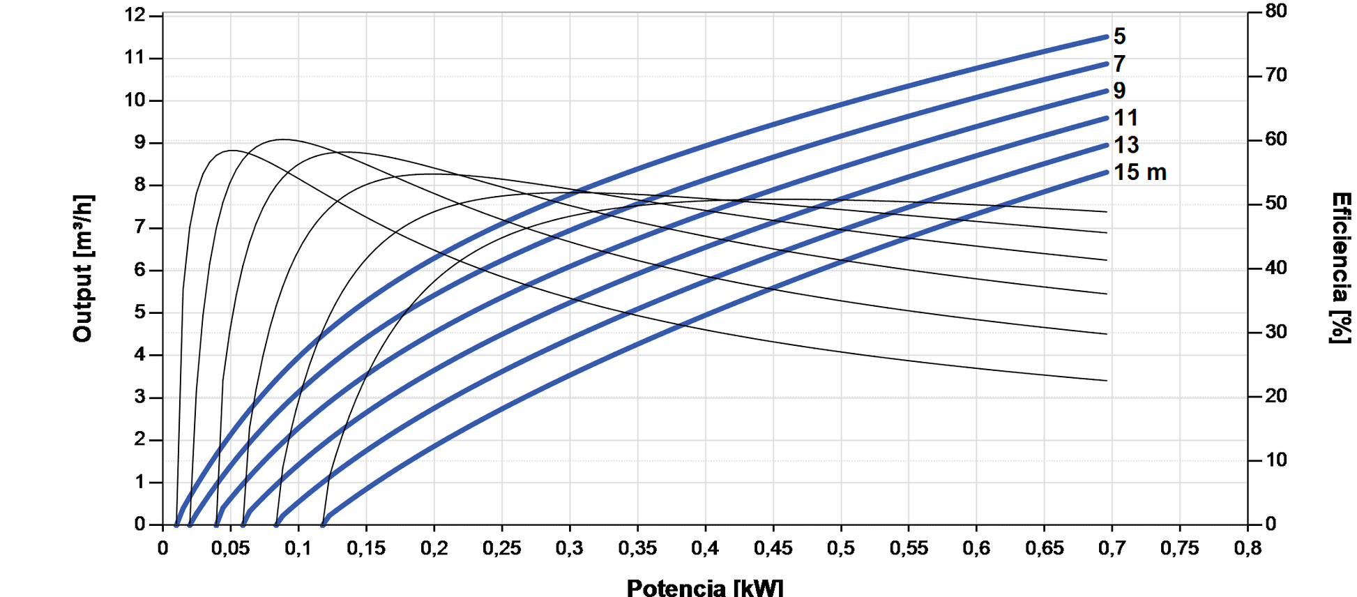 - Reference performance: 6.3 m³/h at 20 m; hydraulics with capacity up to 12 m³/h / 15 m.