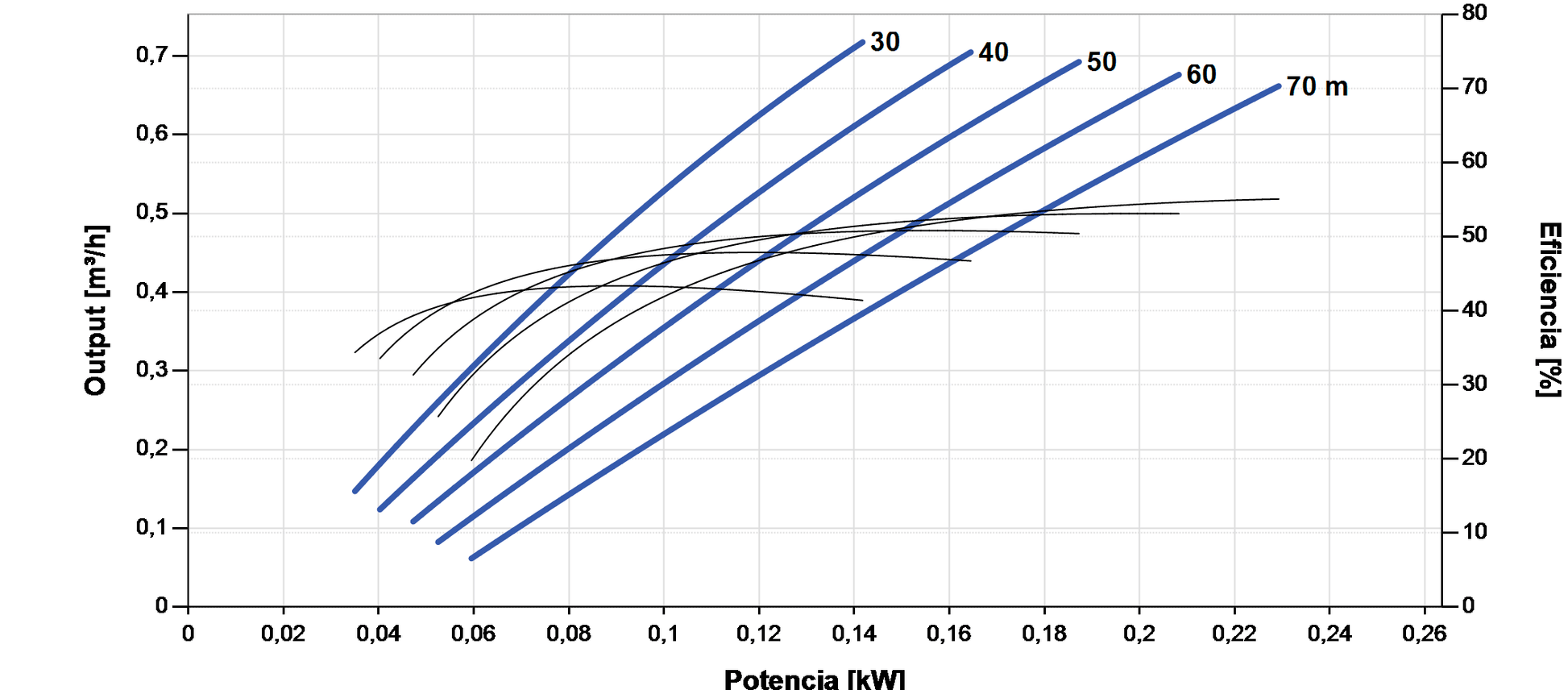 - Reference pumping head up to 90 m with a flow rate of 0.73 m³/h.