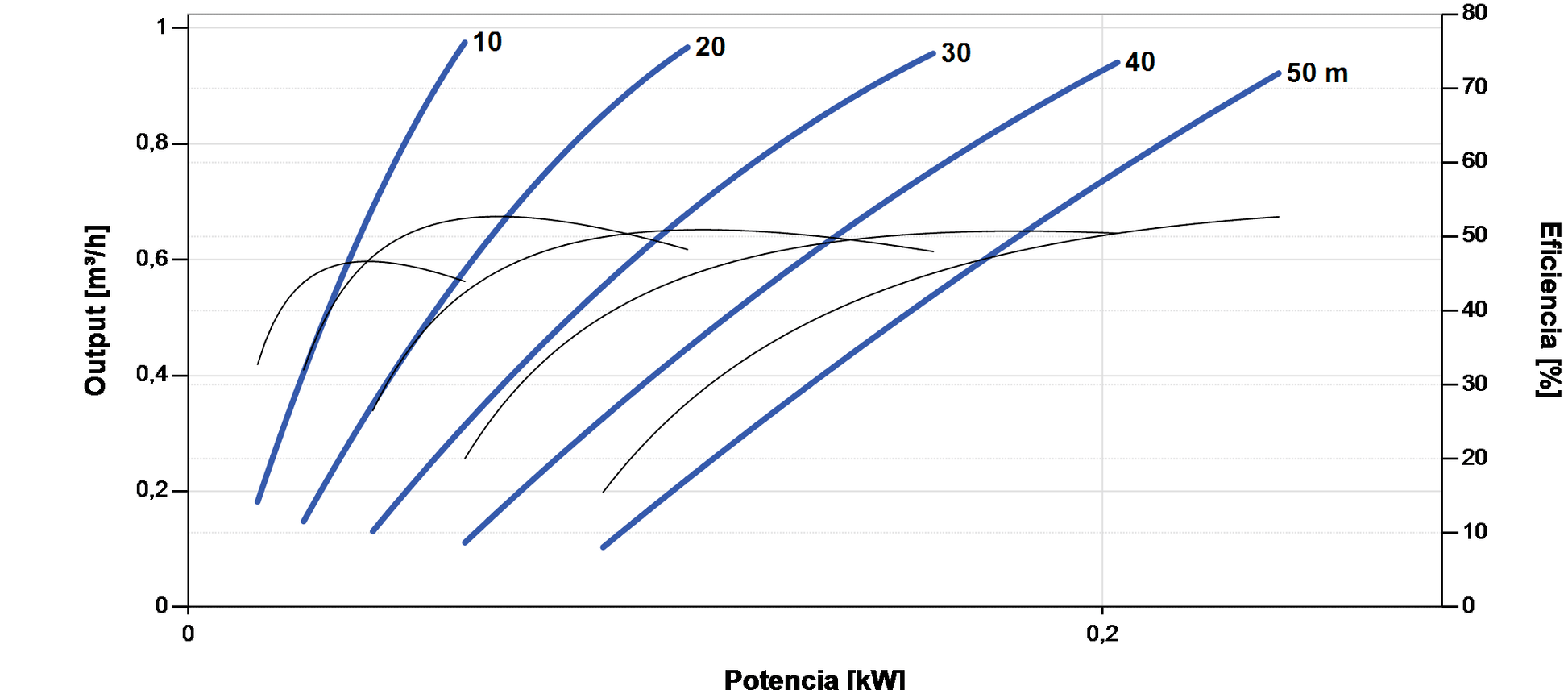 - Portata massima di 0,98 m³/h (980 l/h) e altezza manometrica fino a 50 m, ideale per serbatoi e irrigazioni con domanda continua.