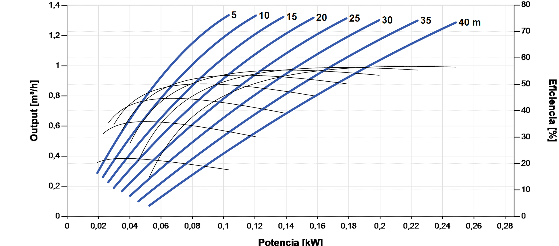 - Caudal/altura: 1,3 m³/h e 40 m, ideal para depósitos, rega gota-a-gota e abastecimento doméstico.